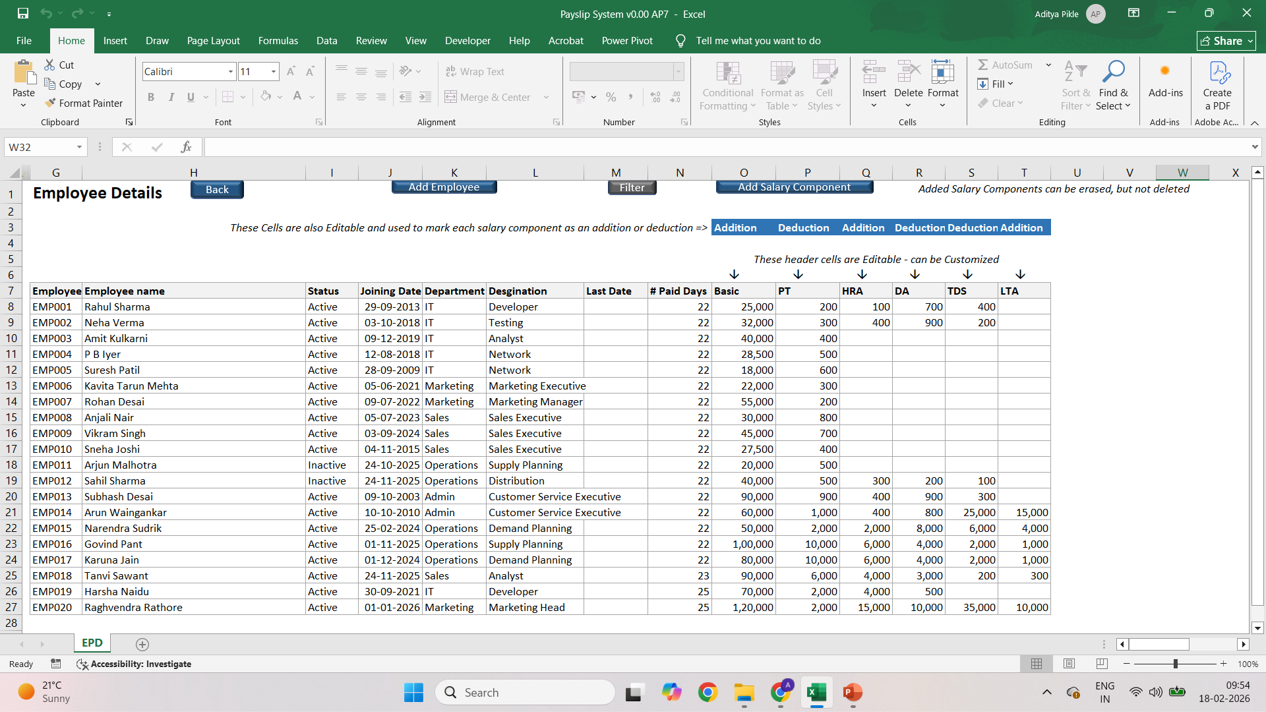 This is not a random spreadsheet. It is a controlled payroll system built inside Excel.