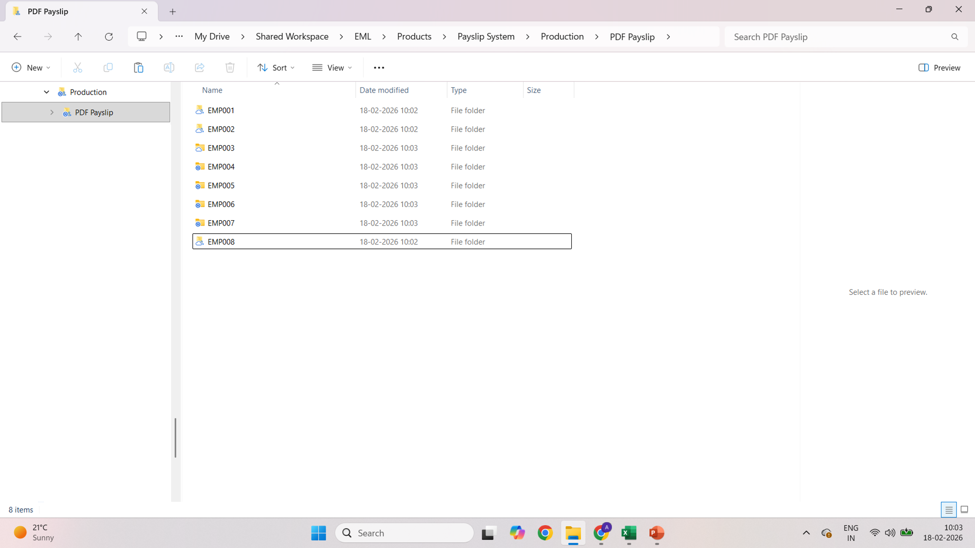 Each payroll cycle is saved in organised folders for easy tracking and instant reprint.