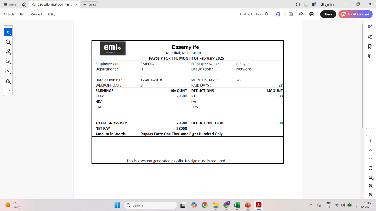 No. This is a structured payslip generation system. It does not automate statutory compliance like PF, ESI or TDS filings.